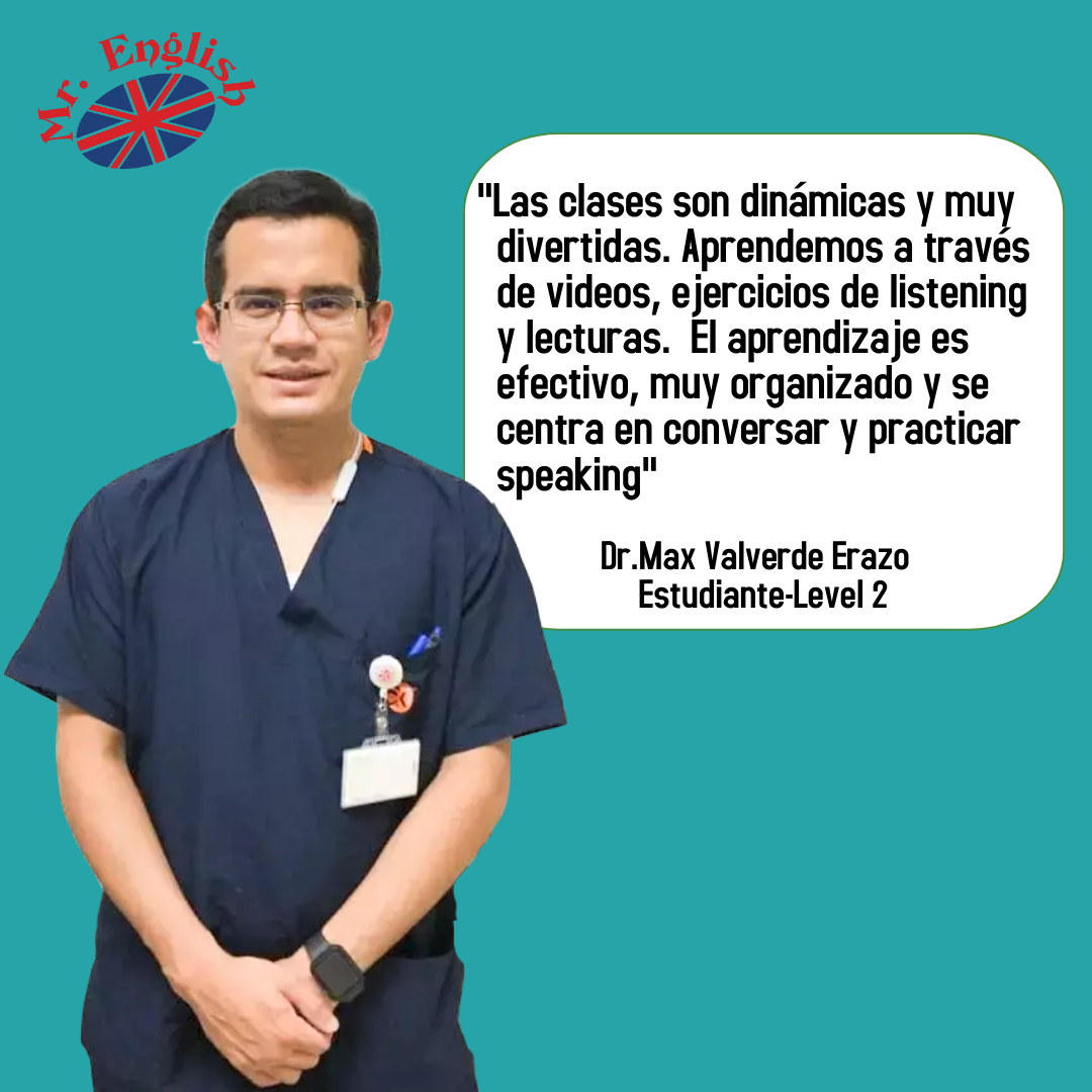 «Haber tomado clases de inglés en MR.ENGLISH durante mi adolescencia me ayudó a que me acepten en la Universidad de Minnesota. Obtuve el puntaje que necesitaba en el examen TOEFL y hoy he avanzado en mi plan de estudios. La metodología CONVERSACIONAL que ellos usan en sus clases me ayudó a poder pensar en inglés, es decir, dejé de traducir y empecé a HABLAR en forma natural»
